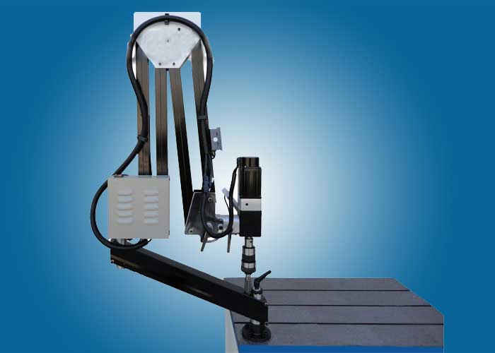 1、微電腦控制,扭矩大小可調,盲孔不斷絲錐:可根據攻絲的大小自行調節扭矩,加上扭力夾頭過載保護,雙重保護,不斷絲錐;主軸在半徑1200/2000MM內任意移動。
